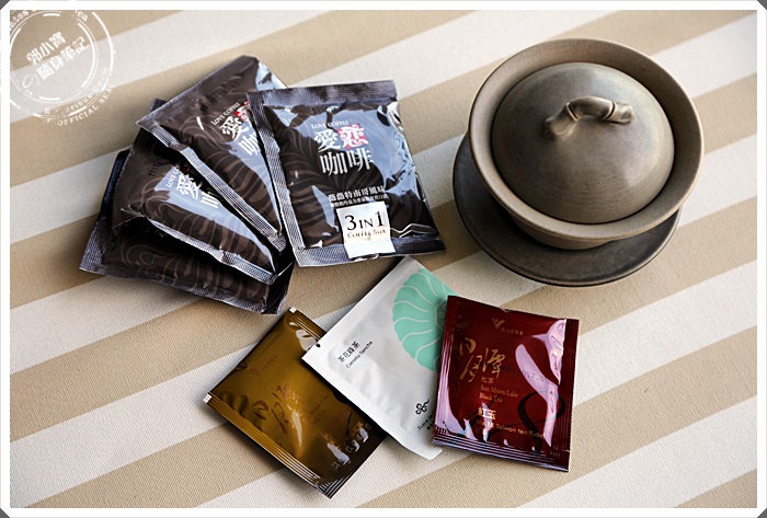 | 茶包跟咖啡包看起來都相當的高級,咖啡包很大氣的給了四包,茶包則有三款。 |