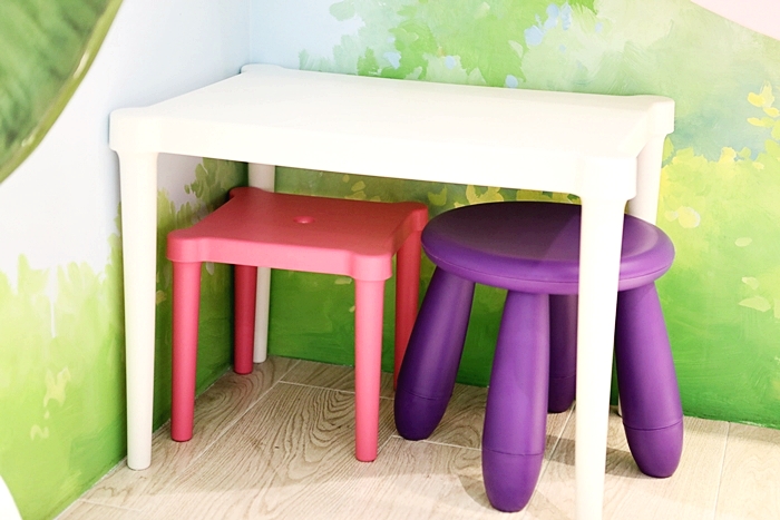 | 小客廳跟化妝台也都是可愛恐龍造型,電視旁邊還有一個超小的可愛兒童桌跟椅子。 |