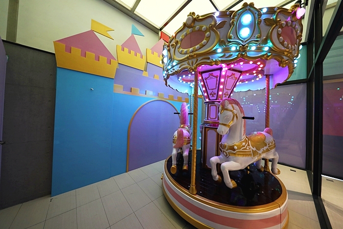 | 一樓後方空間還有一個座旋轉木馬超可愛的,詢問了一下好像是每天固定時間內才有開放給小朋友遊玩。 |