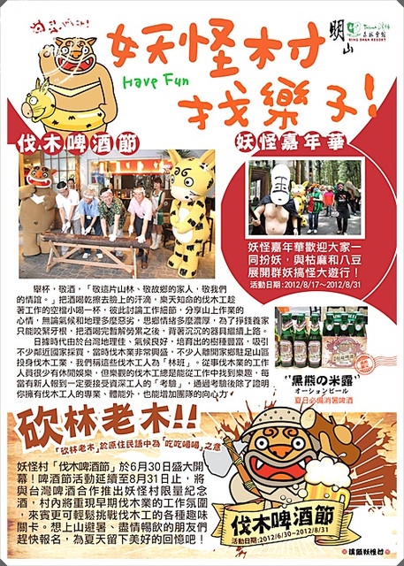 | 在明山會館的各個角落都可以看到各式的伐木啤酒節的海報,他是整個溪頭妖怪村暑假活動的序曲,