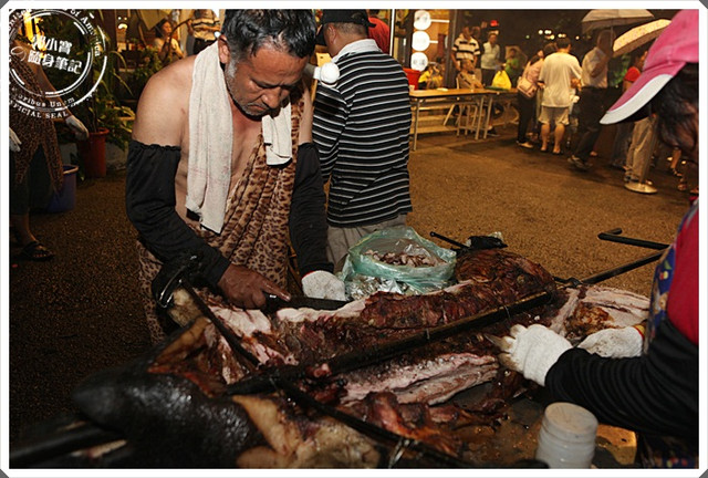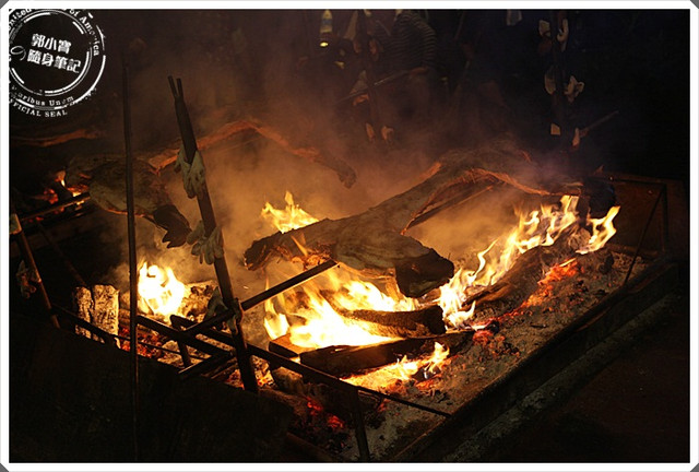 摩登原始人整晚一直在烤山豬分享給大家免費食用,忙的手忙腳亂的,又因為下雨的關係,真的滿辛苦的,