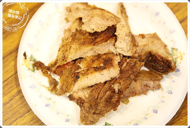 | 我就這樣的一直重複的去排隊,每一盤的份量都滿多的,山豬肉烤起來真的是很好吃,口感吃起來很像是豬頸肉,