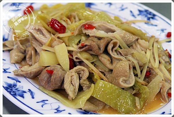 有別一家客家薑絲大腸,鹹菜本身的鹹度加上爆香過的辣椒,變成非常道地的台菜,