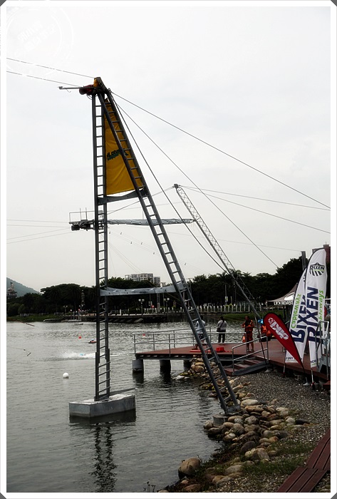 | 一旁就是纜車滑水的控制台了,控制台可以控制纜繩的速度快慢,基本上都是配合職業選手的需求,先前提過讓我驚訝的是玩的人還挺多的,還有很多小朋友來這邊學習纜繩滑水。 |