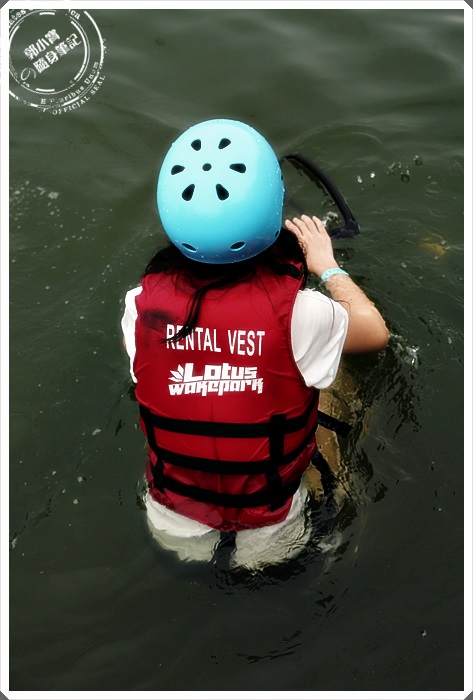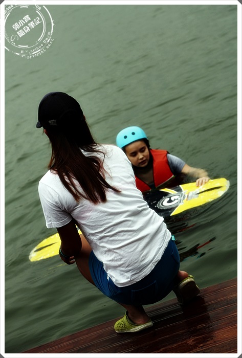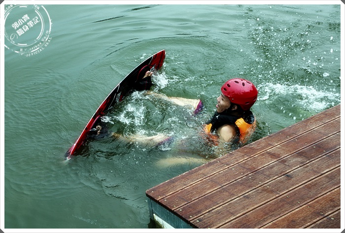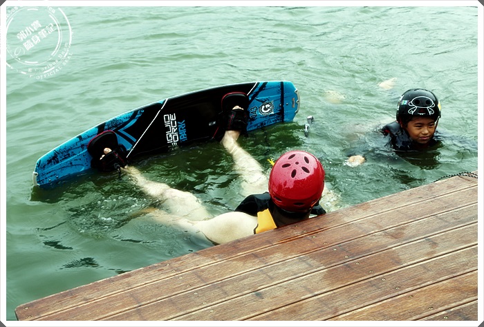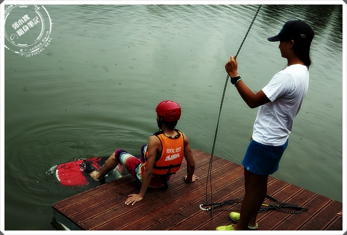 | 如果你真的會害怕的話,教練其實都非常的有耐心教導,甚至從身體浸泡在水裡開始教起@@,MOMO是一個旱鴨子,所以就可以知道教練為了讓他不怕水就花了多少時間了,教練還特別將MOMO帶到另一個單軌纜繩這邊教導。 |