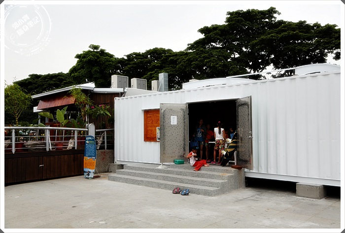 | 建議前往的朋友可以將車停在他對面的停車場裡面,步行3分鐘就可以到達纜繩滑水中心,目前的報到櫃台是用貨櫃搭建而成的,到達這邊的時候讓我頗為意外,因為來玩這個人真的還滿多的,工作人員都有點應接不暇,可見得這遊戲好玩刺激程度真的是吸引非常多的人。 |