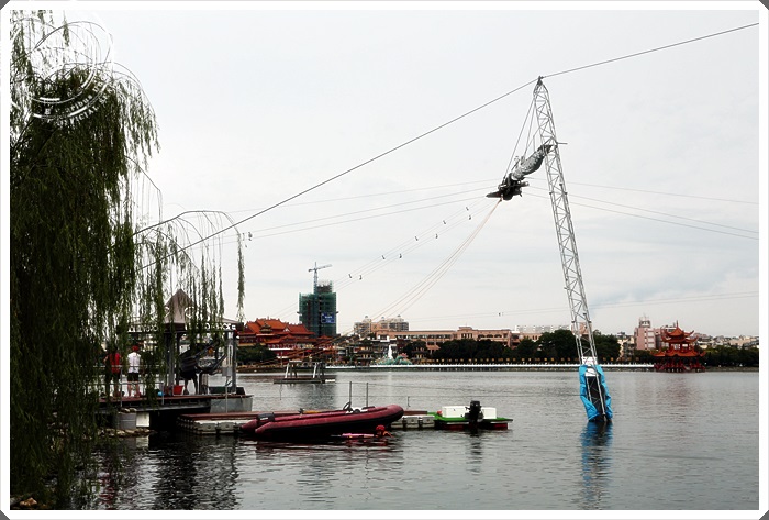 | 蓮池潭的纜車滑水目前是一個正方型的雙軌滑水,中間還有一些跳台可供花招使用,算是非常專業的系統,也是台灣第一座。 |