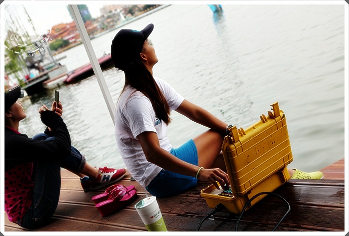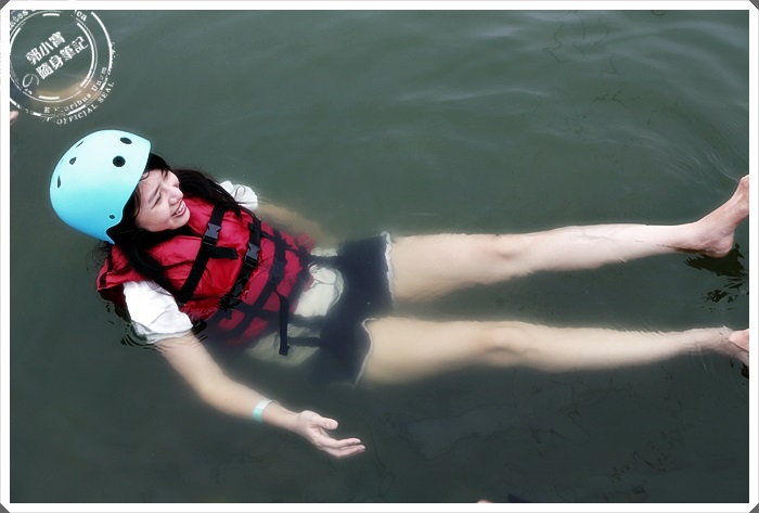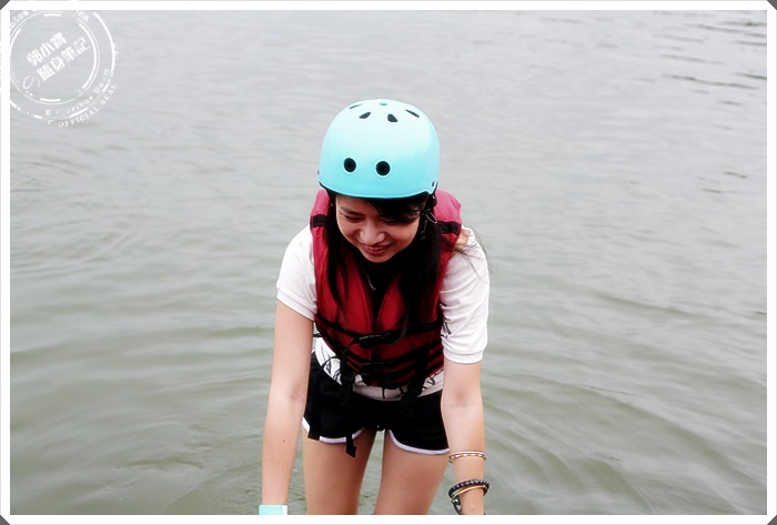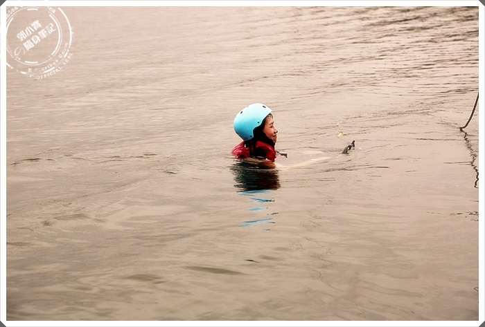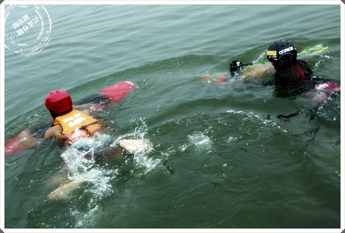 | 接下來就是我們家弱爆的MOMO準備上場了,因為她是旱鴨子又偏愛玩,所以在一旁掙扎非常的久才下水。 |
