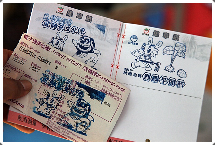 金酒為了推動金門當地觀光,也舉辦了很多的相關活動,除了收集印章可以換獎品及抽獎以外,還有憑機票蓋章就可以抽獎的活動也相當的多呢!