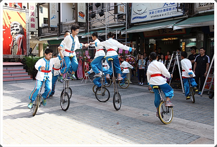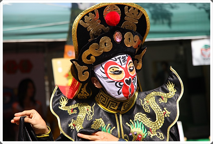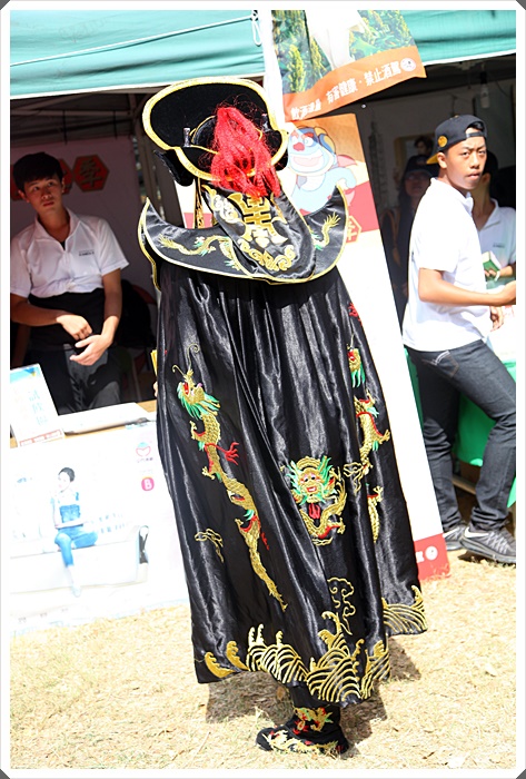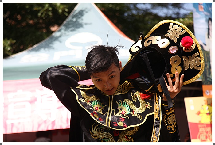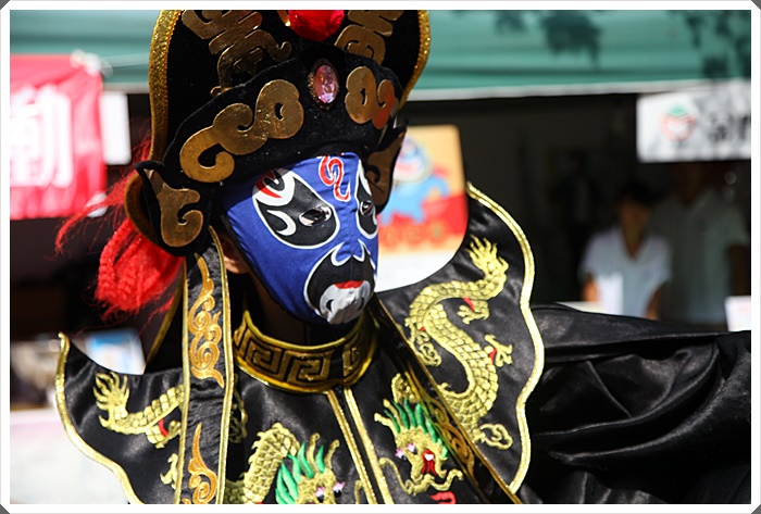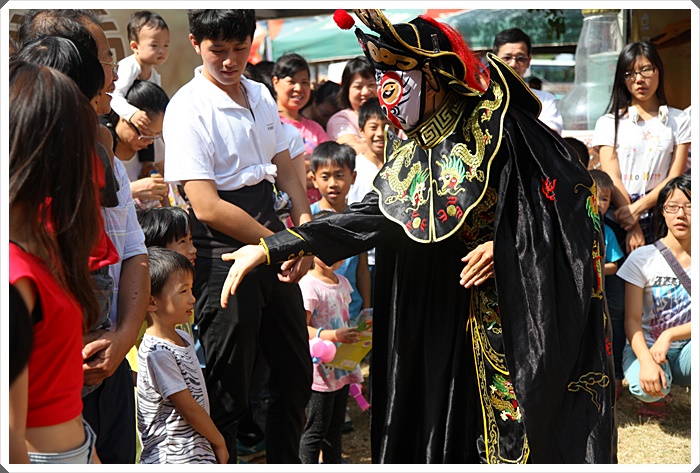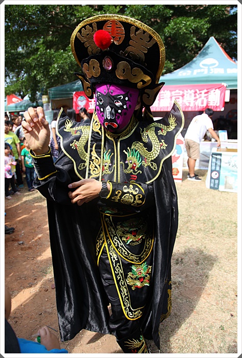 | 據說是台灣有史以來最年輕的學藝歸來的變臉年輕人,大熱天的還要穿成這樣子真的很不容易,一出場連便三臉立馬就引起大家的驚呼聲跟掌聲,雖然我不是第一次看川劇變臉了,但是那麼近距離觀賞倒是頭一遭,真的很讚的表演活動!! |