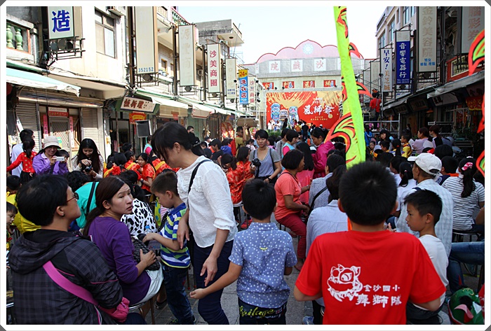 | 活動就從金沙鎮目前最熱鬧的街道,盡頭就是已經廢棄的金沙戲院,金沙鎮也是我金門回憶中一個很值得走一走的地方,那小街斜影與人文風情真的讓人難以忘懷,但是今天的金沙鎮卻是熱鬧異常。 |