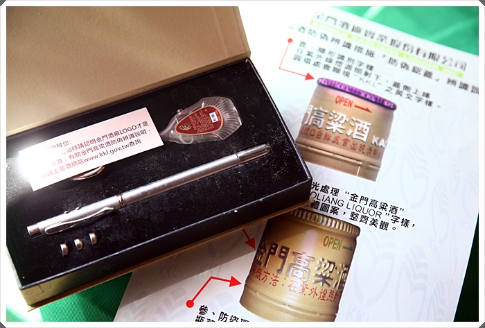 千萬別以為只有這樣而已,每次活動金酒的攤位都還會搭配主題,像這天就是教大家怎麼辨別真假金門高粱酒。 |