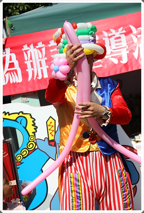 | 最後小朋友歡迎的就是汽球先生的表演,氣球先生幾乎是忙到不可開交,要應付這一大堆的小朋友可真的不容易,但是在他的靈活妙手之下,平凡的氣球變成了各式各樣的手上玩具及頭上的帽飾。 |
