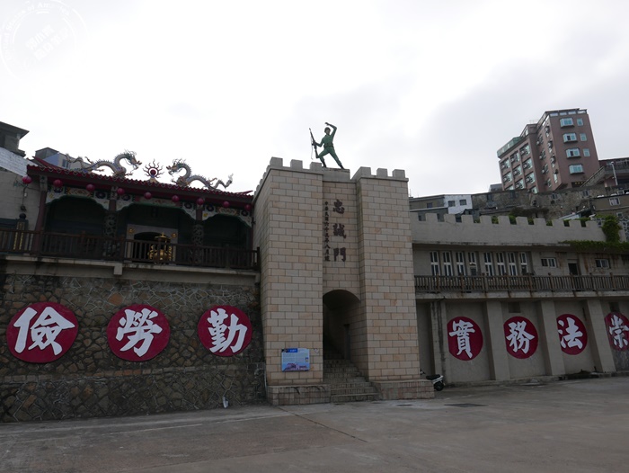 | 看完了安東坑道後我們趁著中間的空檔的時間,吵著要阿德導遊戴我們了解一下東引最主要的街道中街的一些建築歷史跟人文,這碼頭不遠處的忠誠門就是東引島主要地區的大門,我本來還以為他只是個裝飾物或是台城,其實我來馬祖幾次了,卻第一次來到這東北角的東西引。 |