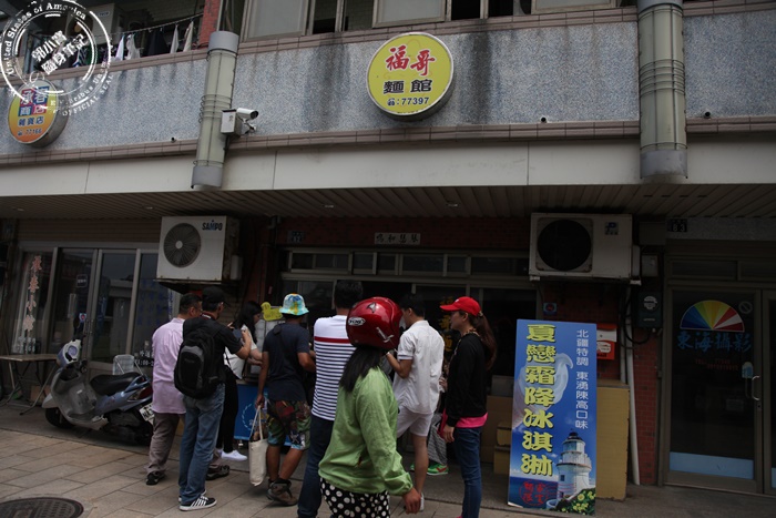 一上中街我們就幾乎被熱暈頭了,阿德大哥趕緊帶我們來吃個東引目前最夯的是東湧陳高冰淇淋,外表的招牌是麵店,裡面也確實是麵店,但是外面的冰淇淋可是大有來頭,一到現場就看到很多遊客大排長龍了。