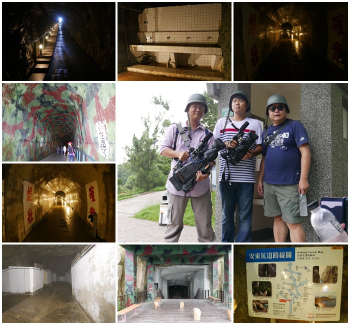 門口還有塑膠的鋼盔可以戴,更融入了當時的情景,這次很感謝同行的三位媒體攝影大哥,有他們整個行程增添了很多樂趣,但是看著他們扛著大機器上山下海真的很佩服他們,果然每一行都有他辛苦的地方,安東坑道內下去以後才能知道他的鬼斧神工,單靠人工搬運跟開鑿實在令人佩服,加上東引島是屬於花崗岩島嶼,開鑿起來更是不容易。