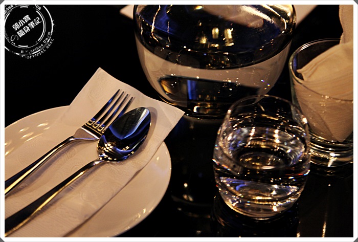 | 參觀這美麗的餐酒館確實花掉了我們不少的時間,幾乎每個人都在四處拍照,桌面上的刀叉跟水杯都已經幫我們準備好,工作人員也一直在坐位桌邊等待我們回來點餐XD |