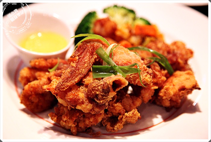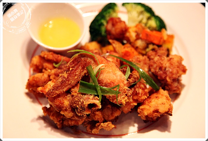 | 這豆乳雞算是比較不合我的胃口的,據朋友說上次點她們家的香草烤半雞得到很棒的平價,這次的私房豆乳雞看起來相當的可口,沾醬是用新鮮鳳梨打成泥後冷藏存放的,豆乳雞吃起來比較是適合有喝酒的朋友來點,因為炸的比較乾一點,所以喝酒的朋友應該是會滿喜歡的,但是小寶沒喝酒吃起來就會感覺稍微乾硬了一點,一旁的花椰菜水份雖然滿多的,但可惜沒有加點鹽巴清燙,所以少了一些風味。 |