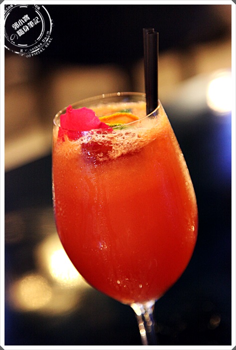 這一杯調酒是八號酒館的鎮店調酒,此款調酒可是得過全國調酒冠軍的作品,在這大熱天裡面看起來就非常的消暑,朋友喝了一口後表示非常的喜歡XD