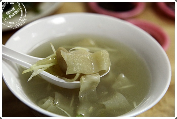 | 湯頭喝起來其實酸菜的味道並不會很重,會是很清淡的味道,鴨腸也很脆口。 |