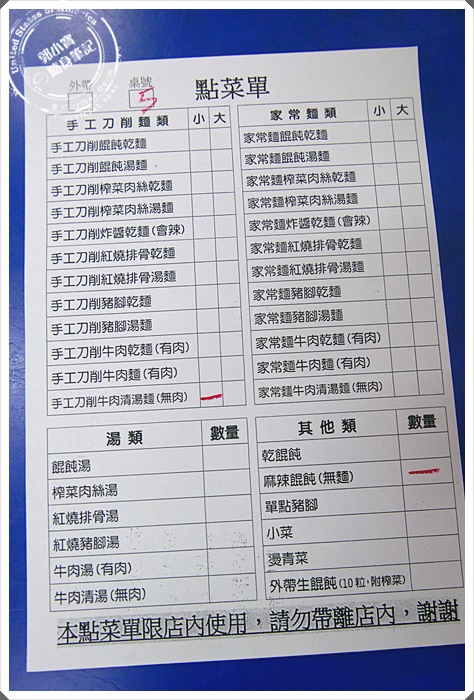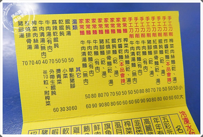 | 麵類的選擇很多,主要分成家常麵跟手工刀削麵,品項大多有乾有湯,寶妹今天想吃麻辣餛飩看看,就不選擇有肉的牛肉麵。 |