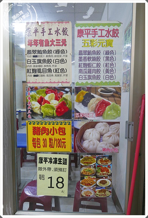 | 店門跟店內貼滿了大大小小的廣告招牌單,於來世宅配服務的水餃跟麵點超級多,原本寶妹對於五彩水餃很有興趣,卻發現店餒竟然沒有賣水餃。其實用餐完後跟老闆娘聊天,他說因為他們家的水餃種類太多,若是平時要賣客人實在是要準備太多的庫存,而且冷凍也太佔空間,成本考量之下才決定只做配送的,不過隨時要買個兩三包都是現場就有的沒問題,如果是過年前或是突然要大量就要事先電話訂購。據說那五彩水餃元寶還上過節目,是過年過節團圓時ˇ阿家搶著買的東西,如果想定就真的提早手腳要快。 |
