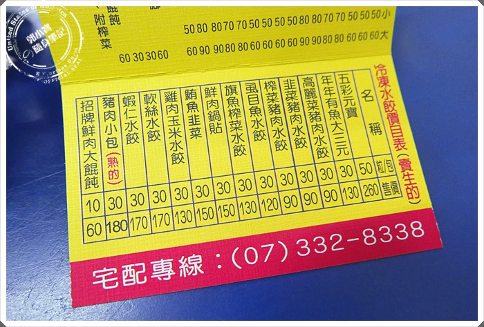 | 名片上的設計讓菜單看起來比較清楚所以放上來讓大家比較好參考,寶妹已經決定過年的時候要來買他們的五彩水餃回家,光是擺盤就感覺很威了阿~~~ |