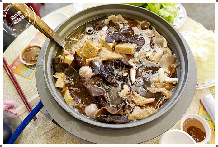 | 鍋物上桌了!雖然不是像外頭使用炭火式的鍋爐,但特製的鍋子器具也是挺威的,整個導熱都會加快,而且好處是竟然米血都不會黏鍋底,一開始還很擔心會黏住有臭灰搭的味道,沒想到竟然這麼神奇的,連我都想買一咖回家XDD |
