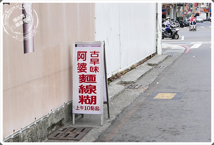 | 如果你從中正路過來順向右轉福德二路就會先在路邊看到這個牌子,阿婆古早味麵線糊從十點開始賣,根據這兩次的經驗是大致上賣完時間約三點半到四點半之間就會售光打烊。 |