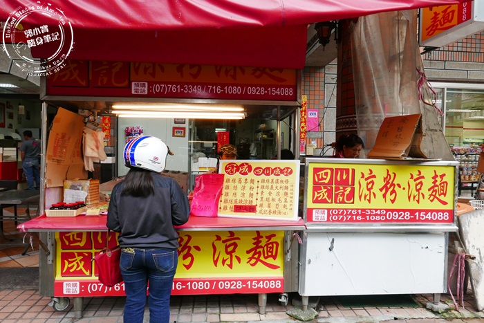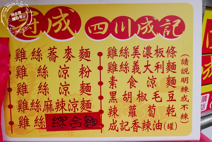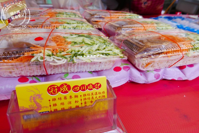| 在地耕耘多年的平凡小店,就在路旁騎樓下用紅色帆布突顯這小攤子,特別起眼,加上店家販售的是四川口味,招牌搭配紅色的整個很適合,今天實在是很熱於是乎就來買買涼麵解嘴饞(講的好像這麼大份量當零食塞牙縫似的,噢北編是大食怪無誤XD)。 |