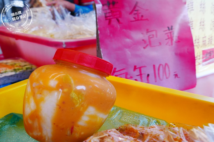 | 店家還自製黃金泡菜,一罐$100,不知道為什麼看到泡菜就很開胃,且泡菜配什麼都適合。 |