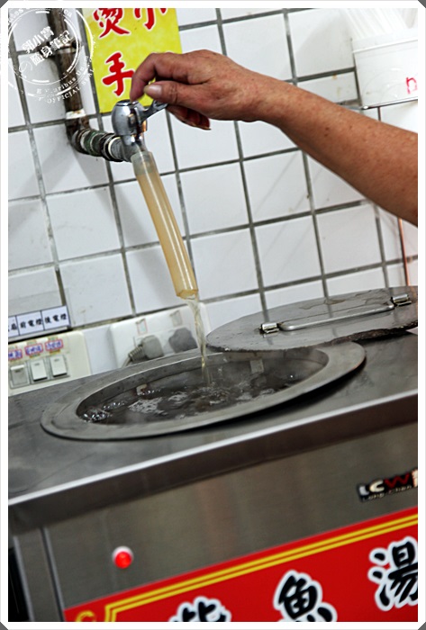 | 最受歡迎的柴魚高湯是按壓式的,很多不知道的朋友第一眼都還以為是紅茶飲料之類的,這柴魚高湯也是小西門的鎮定之寶其中一項,因為客人飲用量太大,所以似乎是二樓一直熬湯,透過鐵管直接打開水龍頭就可以灌到一樓的保溫鐵桶內。 |