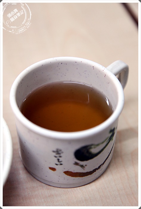 | 重點就是這一杯柴魚高湯,小西門的湯品是用杯子裝的,喝下一口淡雅的柴魚高湯真的相當的舒服,而且會讓人一口接著一口,一杯接著一杯,真的是很好喝的柴魚湯。 |