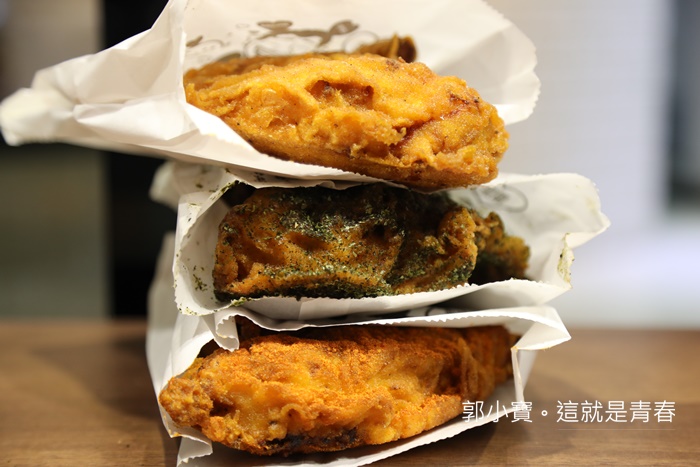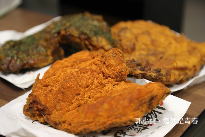 | 三種口味的厚切雞排堆疊起來真的很誇張,我還在堆疊的時候身旁的友人就一直催促我拍快點,雞排就是要熱熱吃才好吃啊!!! |