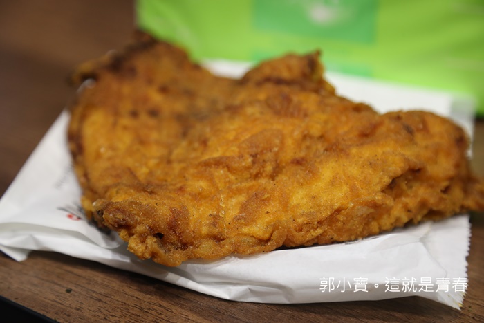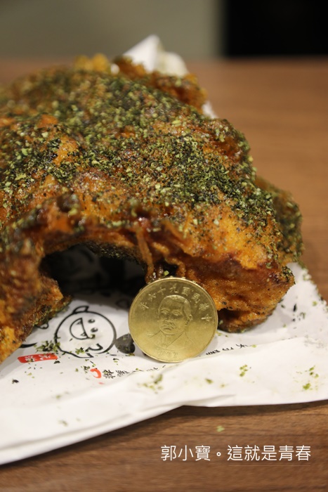一拿到雞排最重要的就是要拿一下比例尺比較一下它的厚度,比50高度還要高,果然是現在最流行的厚切雞排,我已經開始想像那咬下去的爆汁口感了。