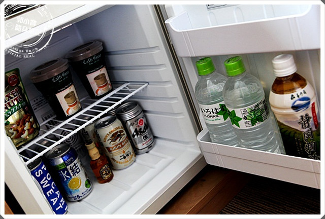 | 冰箱打開是滿滿的飲料,通常如果裡面是只有礦泉水我就敢喝,
