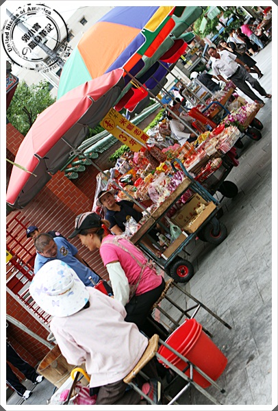 行天宮旁的商店林立,很多民眾也會先來這邊採購一下供俸的祭品跟水果.