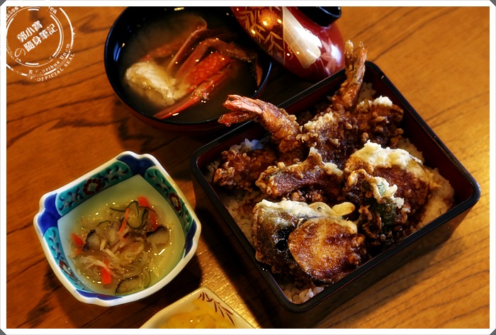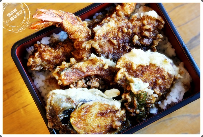 日本的天丼其實就是炸蝦飯,送上來的時候就是一個精美的飯盒,上面除了有兩條˙炸蝦以外,還有其他的天婦羅炸物,淋上店家特製的醬汁,吃起來非常的滿足,炸蝦是摸摸的最愛,基本上它道和食料理店都是點天丼丼居多,日本的米飯大部分都還滿好吃的,