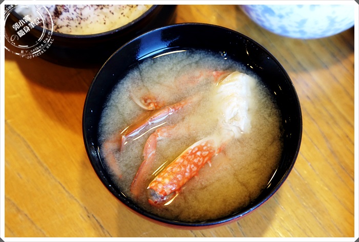 | 還有一碗螃蟹味噌湯,螃蟹只有半隻但是就特別滿足了,主要是提味噌湯的鮮味,這樣滿滿的一個套餐才1500日幣我真的覺得很便宜!!!! |