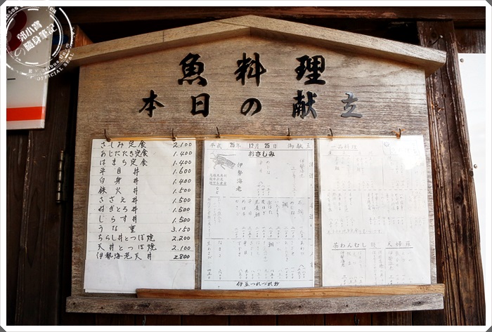 | 一整棟都是魚料理,對面還有一個大停車場,從門外面就可以感覺到店頗有年紀,加上我們再拍店面的時候,很多客人進進出出的,木板上有當天的活海鮮。 |