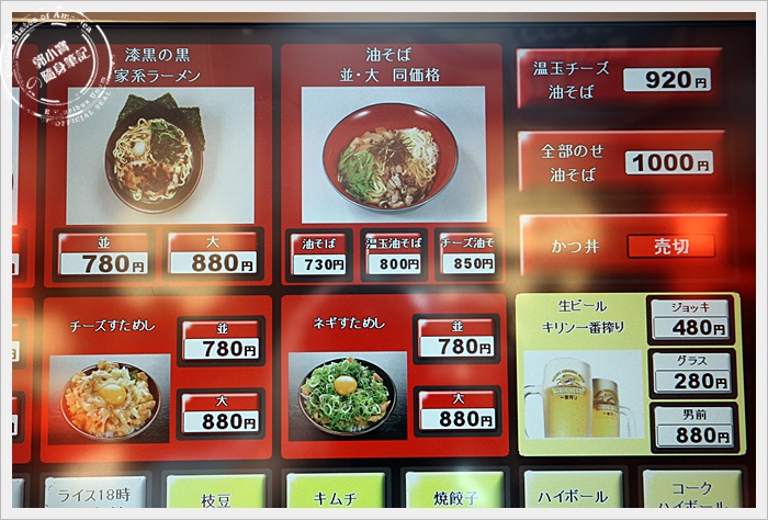 | 壱角家是使用平板的票卷機,現在越來越多日本新的拉麵店都是使用平板的票卷機,客人可以直接看到拉麵種類,對於外國人來說更方便的許多。 |