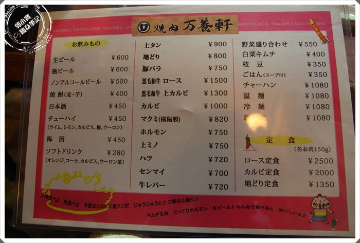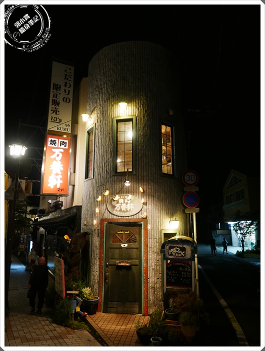 | 我好像去到日本每個地方都一定要找間燒肉來吃吃,因為對我來說來日本好像沒吃到日本和牛都會很對不起自己,加上日本每個地區的和牛都有自己的品種,如果可以的話我個人都會以當地的和牛品種為第一優先,湯布院這邊的燒肉店不多,比較知名的有兩間,另一間的價位比較高,相對也是最優質的燒肉店,但是因為價位的考量,所以很多在地人推薦我這一家CP值較高的燒肉店,萬養軒在當地頗有知名度,外觀建築也很有特色,老實說看起來還真的不像燒肉店,反倒是有一點像是西洋料理店。 |