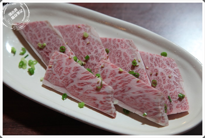 | 最強的肉品上桌,看看這傳說中的大理石紋路的黑毛和牛,這個部位算是五花肉,真的好美的紋路,用看的就讓人口水直流了。 |