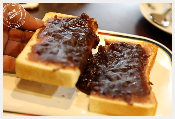 | 非常受到女性朋友的紅豆吐司,紅豆甜度還滿高的,熱呼呼的也很好吃。 |