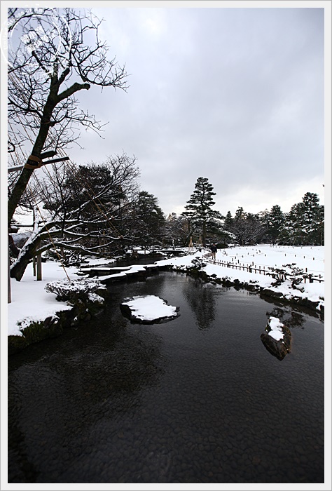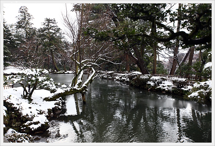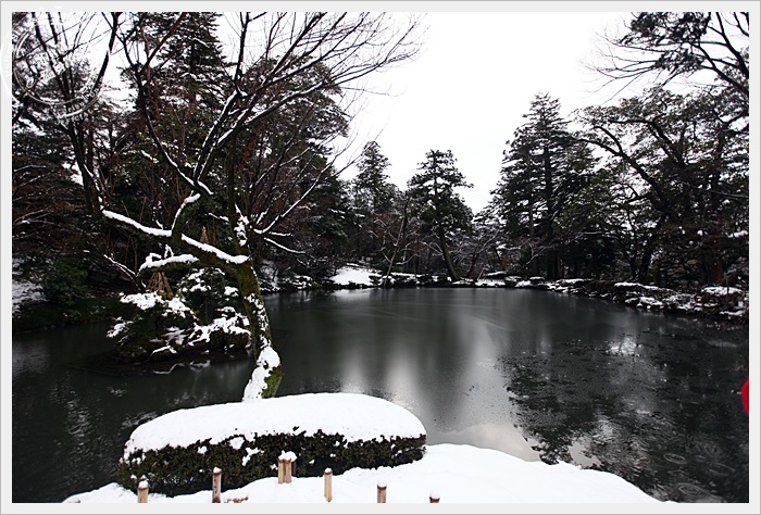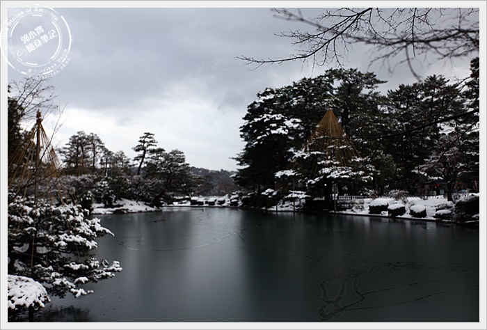 | 這薄冰的湖泊看起來也太漂亮了,幾乎隨便拍都覺得很美,靜靜的站在這邊真的可以感受到這兼六園的魅力,不管從哪個方向看美到了極點。 |