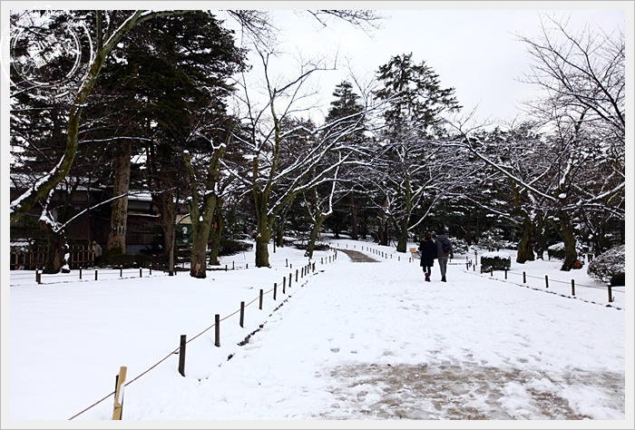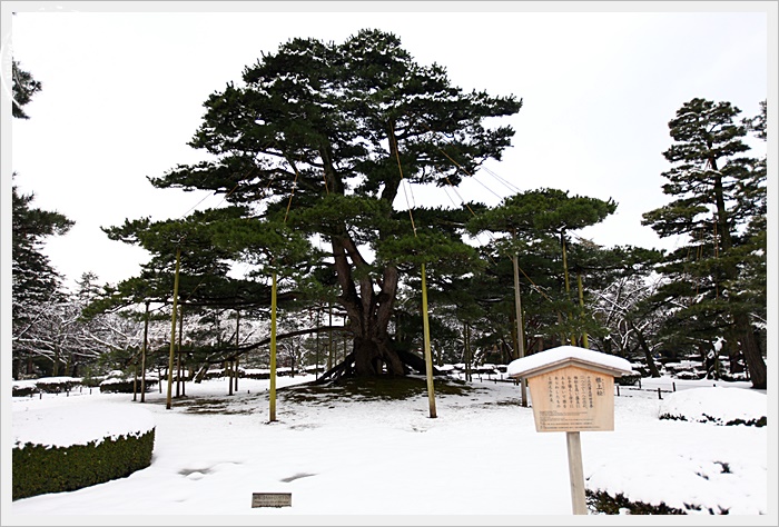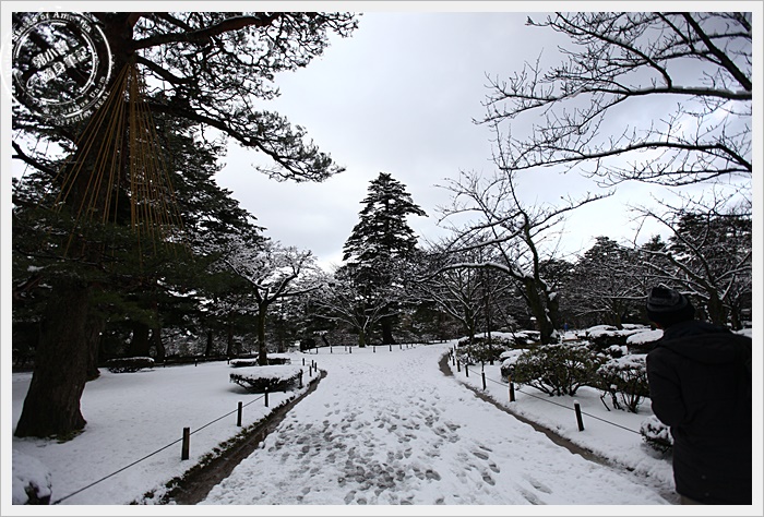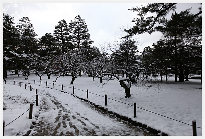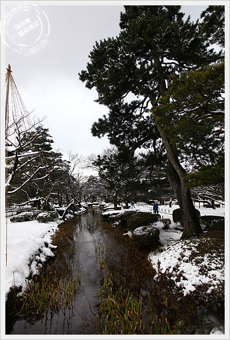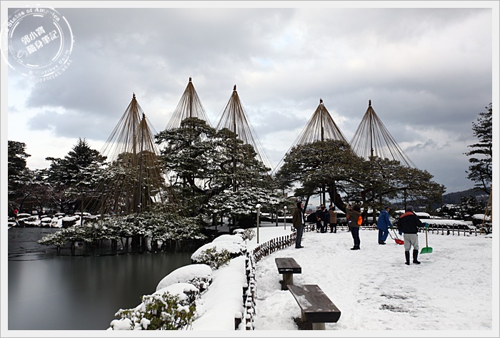 | 冬天的兼六園遊客也相當多,畢竟兼六園還是以冬季雪景聞名,兼六園的腹地不算是特別大,但是卻給人一種淒涼的美,尤其園藝造景都非常的精緻,絕對值得你進去走上一趟。 |