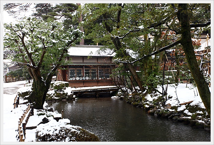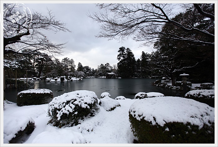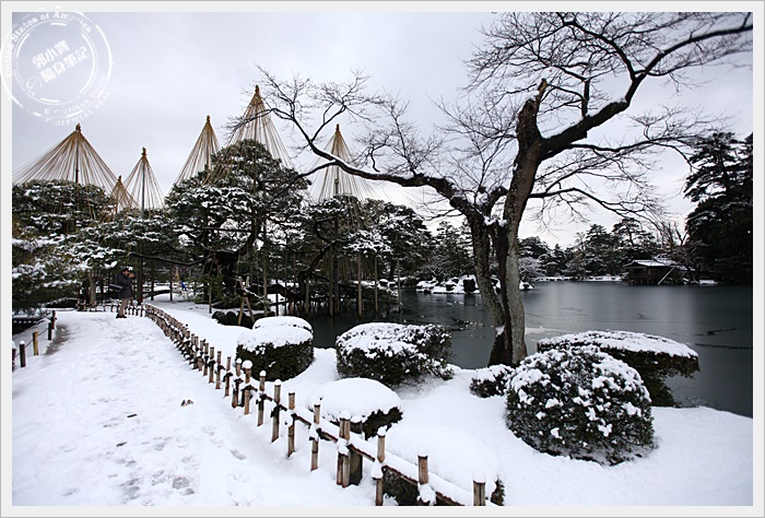 | 逛到後面還有一個小湖泊,搭配這邊的小屋感覺起來還挺漂亮的,非常好逛的一個景點,我個人真的超喜歡兼六園的雪景的,之前聽到很多朋友夏天來的時候都說兼六園感覺起來還好,日本朋友則是跟我說第一次來一定要冬天才可以感受到兼六園那唯美的氛圍,這次來果然是這樣的感受沒錯! |