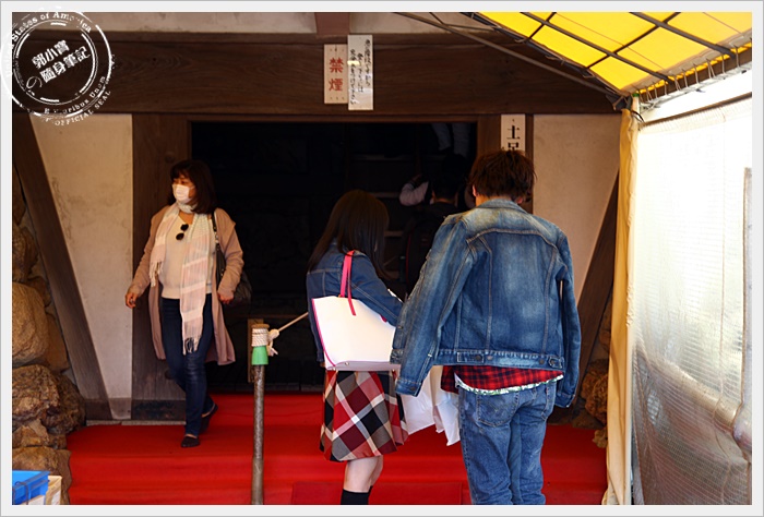 | 往上爬了一會就可以看到門口,走到這邊就可以發現犬山城真的很美,雖然她沒有其他知名的城以樣有廣大的腹地,但是我喜歡她跟松本城一樣小而美的質感。 |