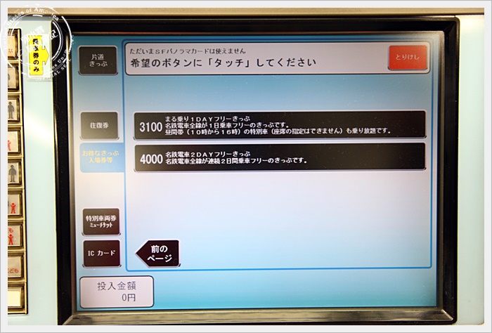 | 推薦大家可以買名鐵的兩日眷,價格還挺划算的,名鐵的周遊眷有很多種類,買最便宜的一日或兩日卷即可。 |