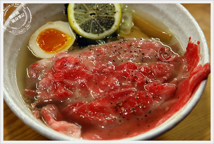 | 這一碗拉麵是最多人點的,主要單價沒有那麼貴,但是這樣的價位可以吃到A5飛驒牛算是還滿划算的,店內菜單沒有特別註明是哪個部位的肉品,牛肉是最後才放進去的,所以看起來非常生,怕生的可以放在湯里麵泡熟一點,肉起來一樣非常的鮮甜嫩口,但是跟上一碗比起來確實不夠那麼過癮。 |